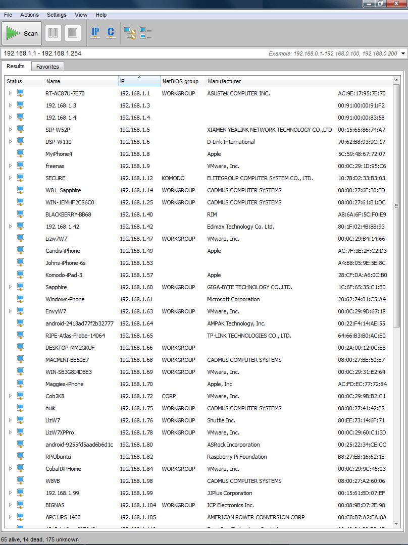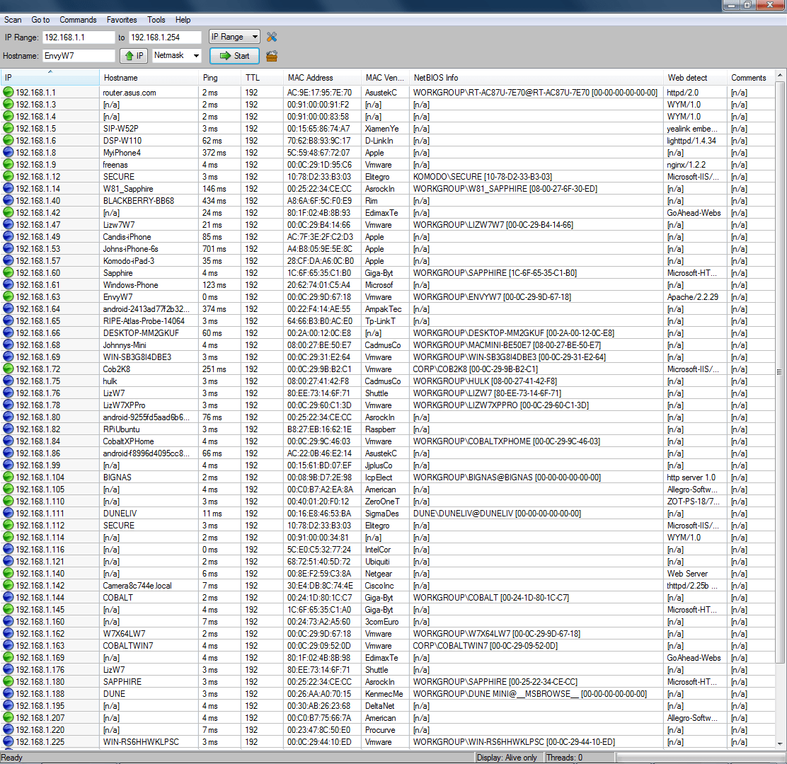 To demonstrate how well Slitheris performs, we scanned a test lab network with the 3 most popular Windows IP scanners in the world and compared their results to Slitheris. Freeware applications were mainly chosen due to their extremely high popularity, as no comparable commercial network scanners for Windows could be found for comparison.